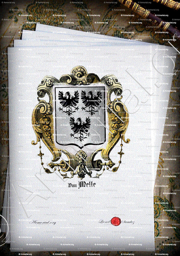 - La famille VAN MELLE porte pour armes : " d'argent à trois aigles éployées de sable. ".