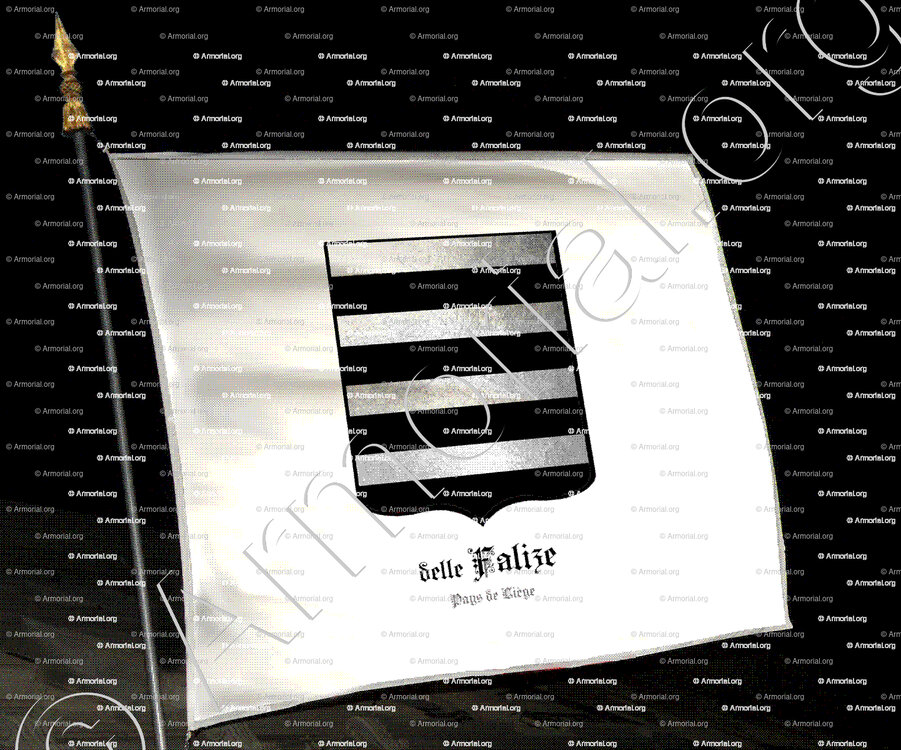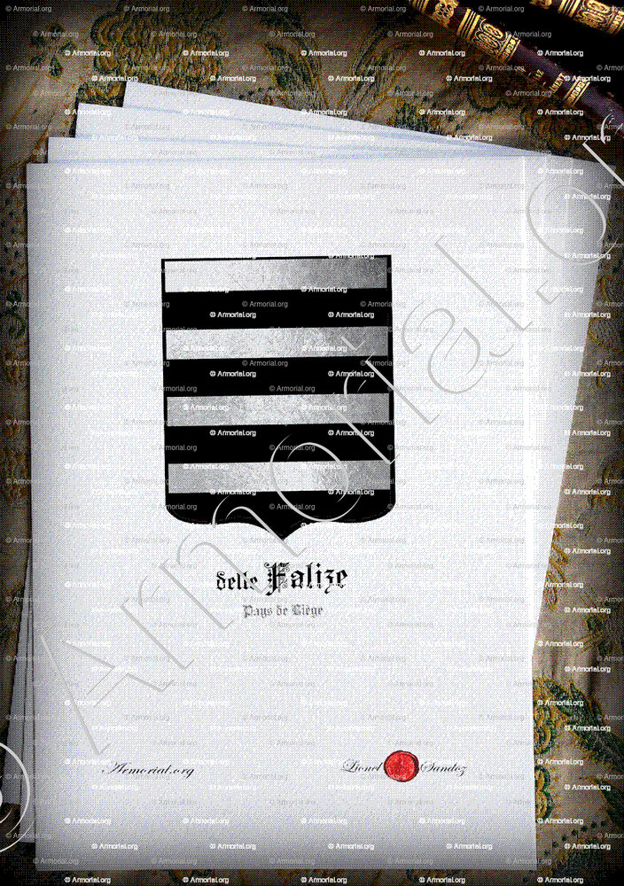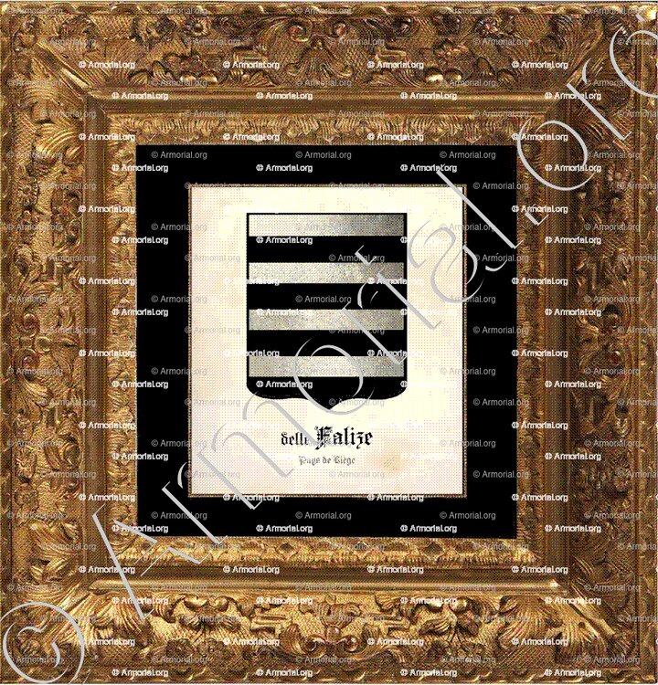 Adilhe (Adèle) de Dinant, fille de Jean, épousa Henri delle FALIZE, qui portait des armes " d'argent burelé de sable " Hemricourt, 78.