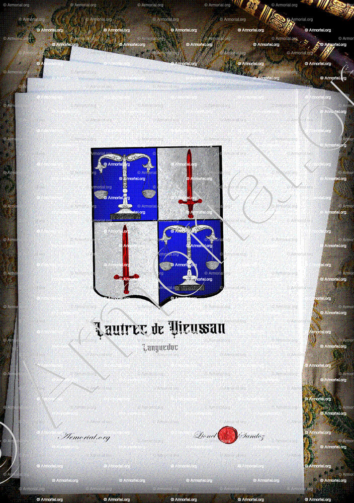 Ces armoiries semblent faire allusion aux fonctions de bailli et juge exercées par plusieurs membres de la famille de Lautrec.