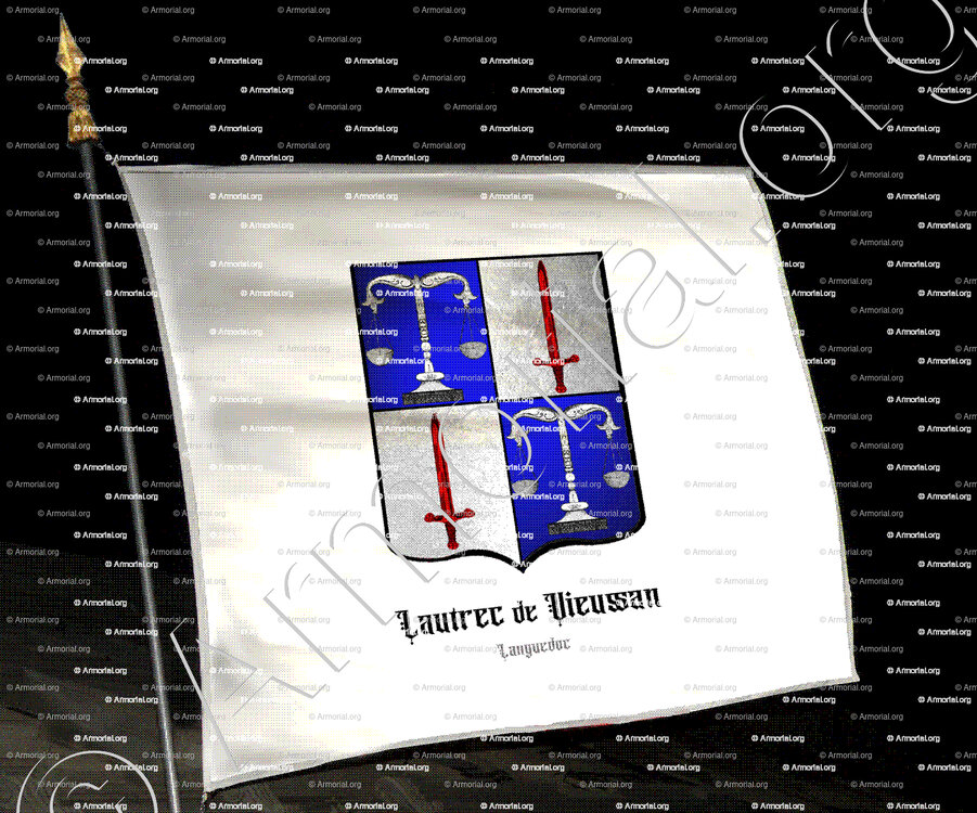 Depuis qu'ils ont prétendu se rattacher aux Toulouse-Lautrec, les Lautrec de Vieussan ont d'abord posé l'écu de Toulouse sur celui que nous venons de décrire, puis ils ont supprimé ce dernier et porte : Ecartelé aux 4 et 4 de gueules à la croix vidée, cléchée et pommetée d'or, qui est de Toulouse ; aux 2 et 3 de gueules au lion d'or, qui est de Lautrec.