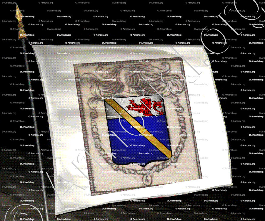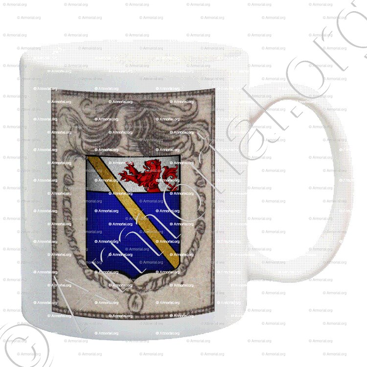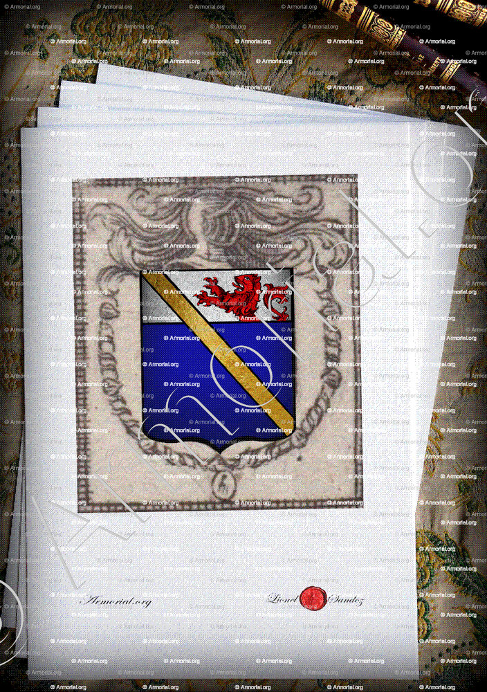 " D'azur, au chef d'argent, chargé d'un lion naissant de gueules, à la cotice d'or brochante. "