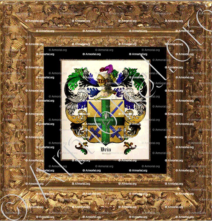 BRIN. - Nome di una famiglia originaria di Tiffauges di cui si trova un cavaliere di una guardia di Clisson a Ploërmel nel 1380 (Revue historique de l’Ouest), molto spesso citato, dal 1370 al 1380, per la baronia di Raiz, nei Processi di dom Morice. Nel XIX secolo, un ufficiale superiore, nobilitato nel 1817, portava "d'oro a due spade d'azzurro incrociate in saetta, con una croce di verde sovrapposta al tutto, caricata con un gambo di giglio d'argento, terrazzato dello stesso" (Nobiliare e araldica di Bretagna, di Pol Potier de Courcy, 1862. Armoriale di Bretagna di Guérin, 1845-1848, con stemma colorato.)