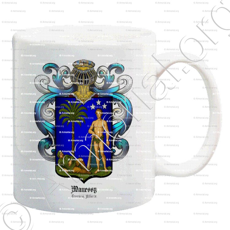 - Le vert (sinople) représente l’espérance, la vitalité et la jeunesse. Dans ce contexte, il pourrait souligner la force et la persévérance de la famille MANESSY, qui a fui les persécutions pour s’établir ailleurs.