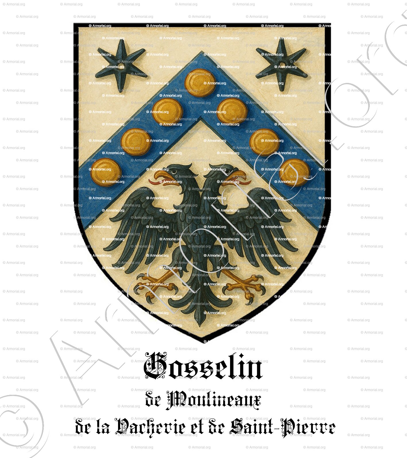 - The coat of arms of the GOSSELIN de BOISMONTEL family, as described in various heraldic sources, is: