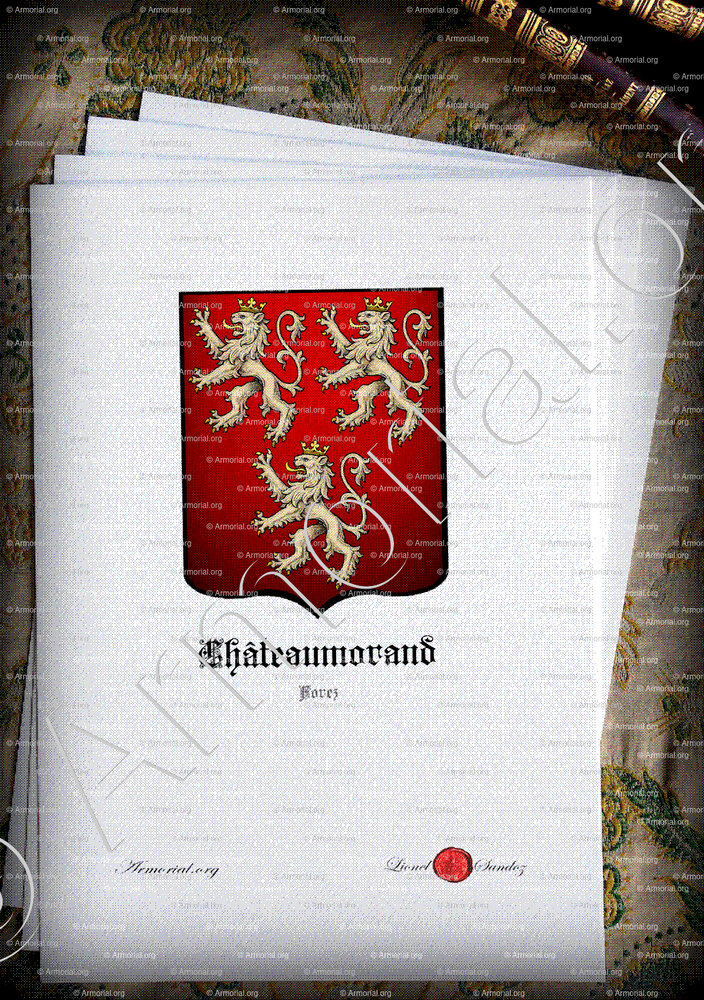 Origine : Attribué à la branche forezienne dès le XIIIe siècle, époque des premières mentions (ex. : Jean de Châteaumorand en 1248 comme vassal du comte de Forez).