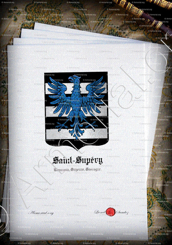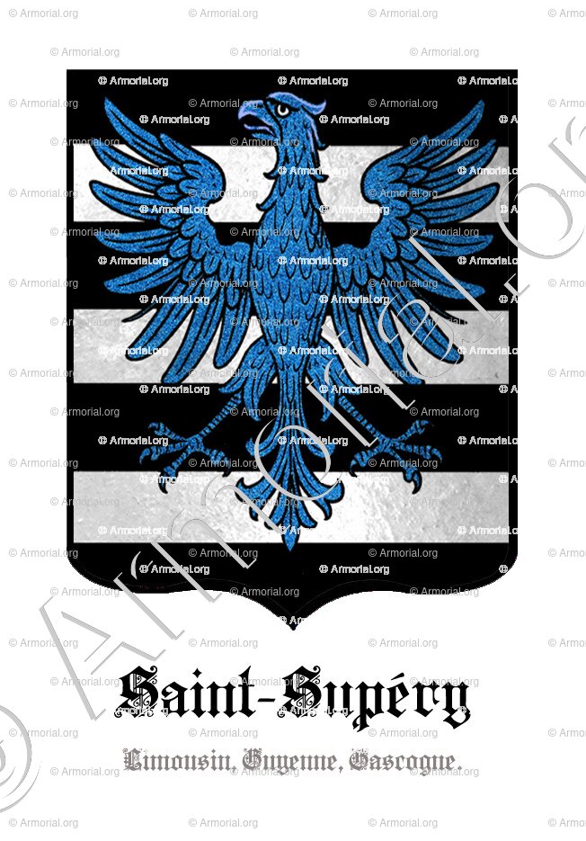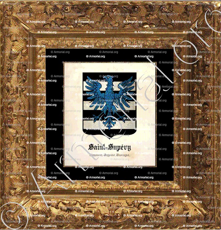 Attribution : Ce blason est mentionné dans des armoriaux pour le Rouergue (élection de Montauban), notamment associé à Jean-Pierre de SAINT-SUPÉRY, curé de Saint-Amans-de-Corcinade en 1696. Il n’est pas directement lié à la famille SAINT-SUPÉRY dans toutes les sources, mais attribué à une branche régionale.