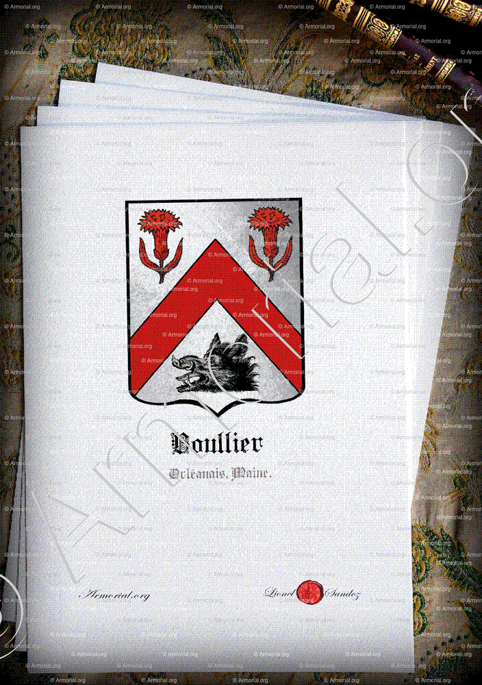La famille BOULLIER, originaire de l'Orléanais en France, porte des armoiries décrites comme suit :
