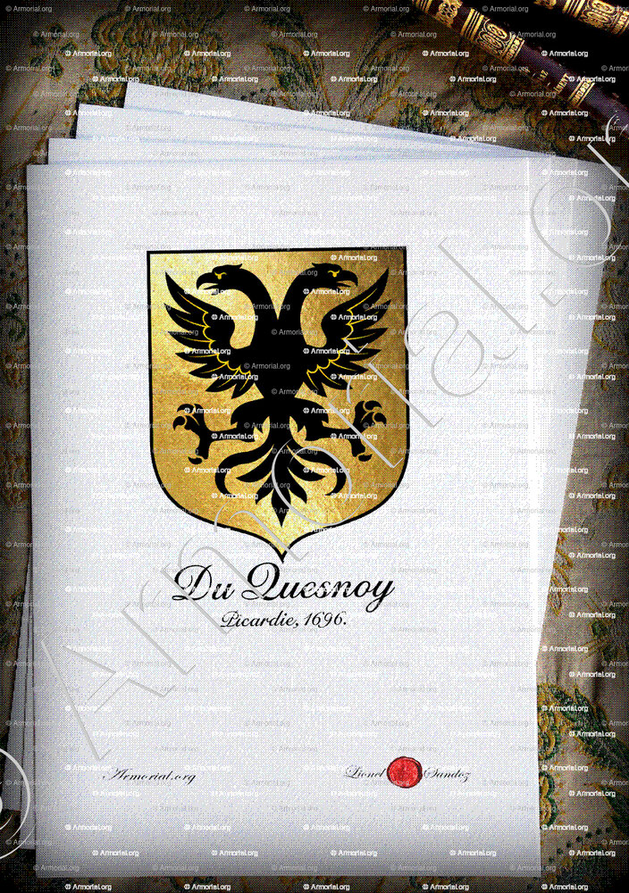 - Par Charles d'Hozier. Registre Picardie avec armoiries du QUESNOY. Source primaire nobiliaire.