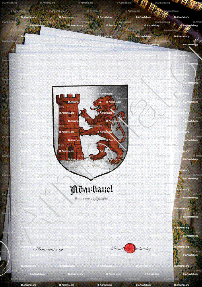 Les armoiries des ABARBANEL, attestées en Espagne, Portugal et Hollande, sont blasonnées :