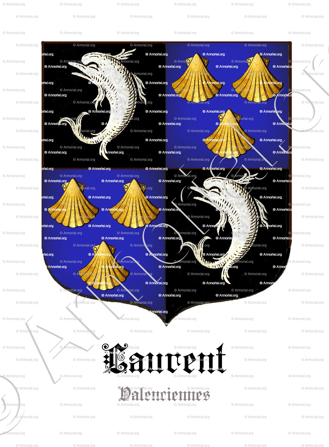 Sur armorial.org et dans l’Armorial général de Rietstap (1884), la variante générale LAURENT inclut des dauphins symbolisant la grâce et la vigilance, sans mention précise de Valenciennes, mais confirmant l’usage bourgeois.