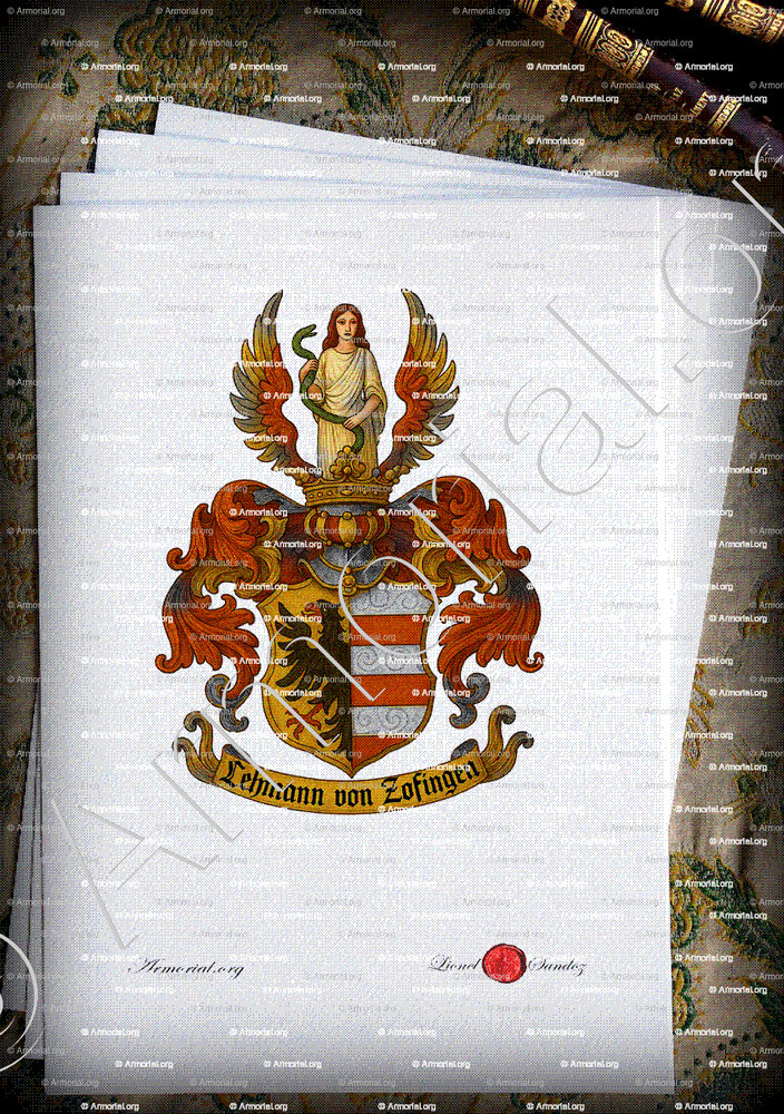 - Motto ribbon: Lehmann von Zofingen (in Gothic letters).