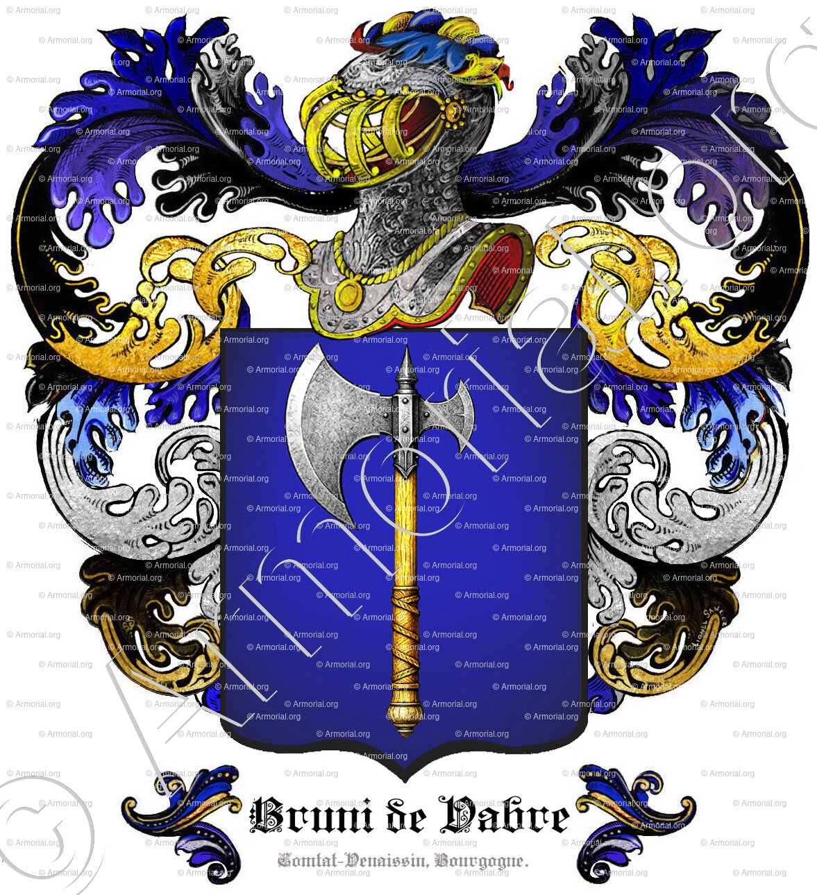 Les BRUNI de VABRE, familiaux consuls de Carpentras, portent les mêmes armes que les BRUNI de BOADES (Provence) et les BRUNI du VABRE (Bourgogne), indiquant une origine unique dans le Comtat-Venaissin, sans lien avec les BRUNI d'ENTRICASTEL (armes distinctes : d'azur à une lance d'or).