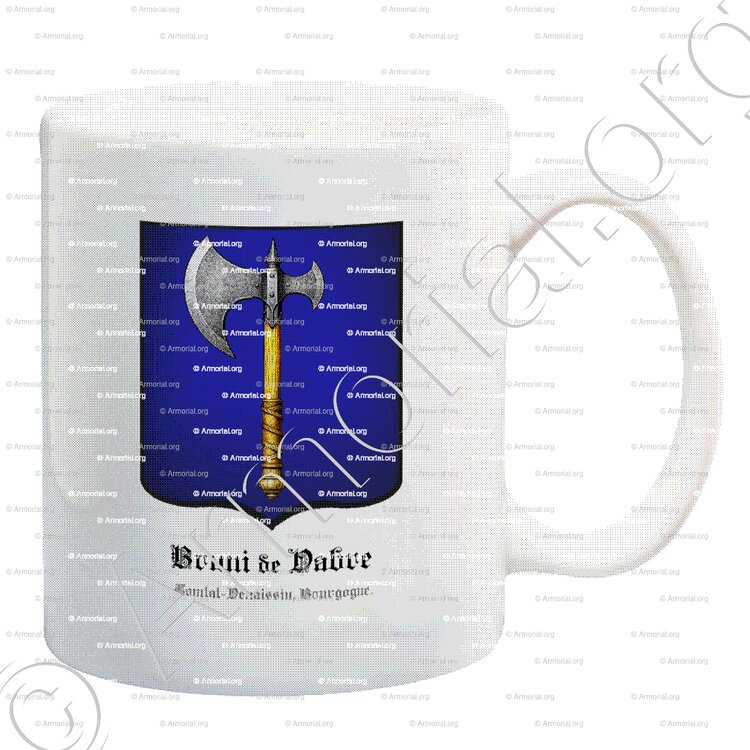 " D'azur, à une hache d'argent, emmanchée d'or, en pal. "