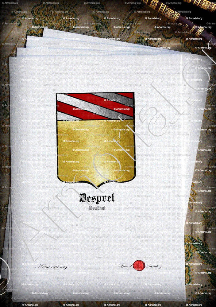Les armoiries des DESPRET (Brabant), relevées par J.-B. Rietstap dans Armorial général (Europe, 1884-1887), se blasonnent :