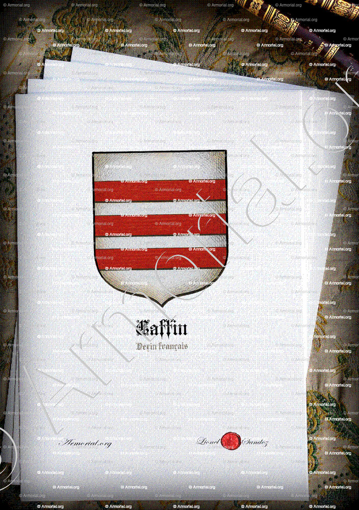 - Enregistrement en 1698. François CAFFIN (père ou oncle du notaire de Nesles ?) paie la taxe pour faire enregistrer ses armes bourgeoises à Rouen (compétence sur Gisors). Les CAFFIN de Nesles, plus modestes, n’enregistrent pas à Paris.