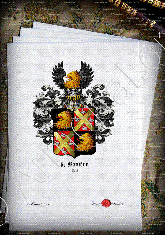 Het wapen van de familie De BAVIÈRE alias de BAVIÈRES (Van den BAVIÈRE) wordt als volgt beschreven: