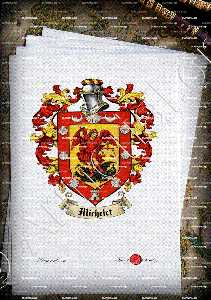 Cette composition riche et parlante (le Saint-Michel renvoyant sans doute au patronage du saint archange, protecteur des armées et des juges) est attestée dans des sources anciennes du XVIIIᵉ siècle, notamment dans des documents manuscrits relatifs à Abraham MICHELET, conseiller et lieutenant particulier au bailliage de Metz (vers 1770-1772).