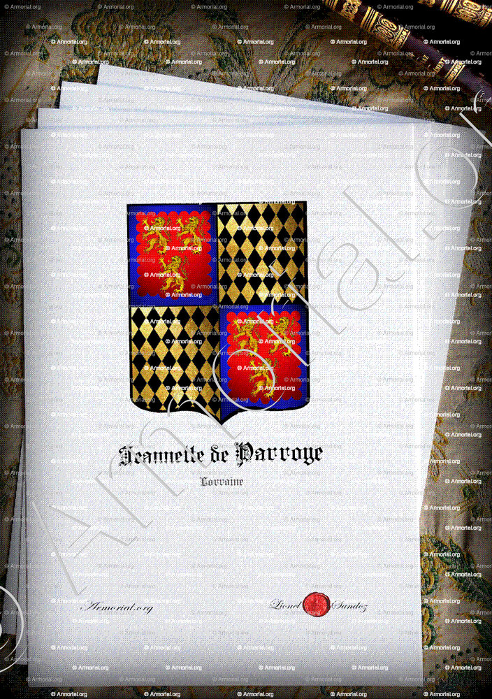 La famille de PARROYE appartient à l’ancienne noblesse lorraine, attestée dès le XIVᵉ siècle dans l’entourage féodal du comté de Vaudémont, relevant de la maison de Lorraine.