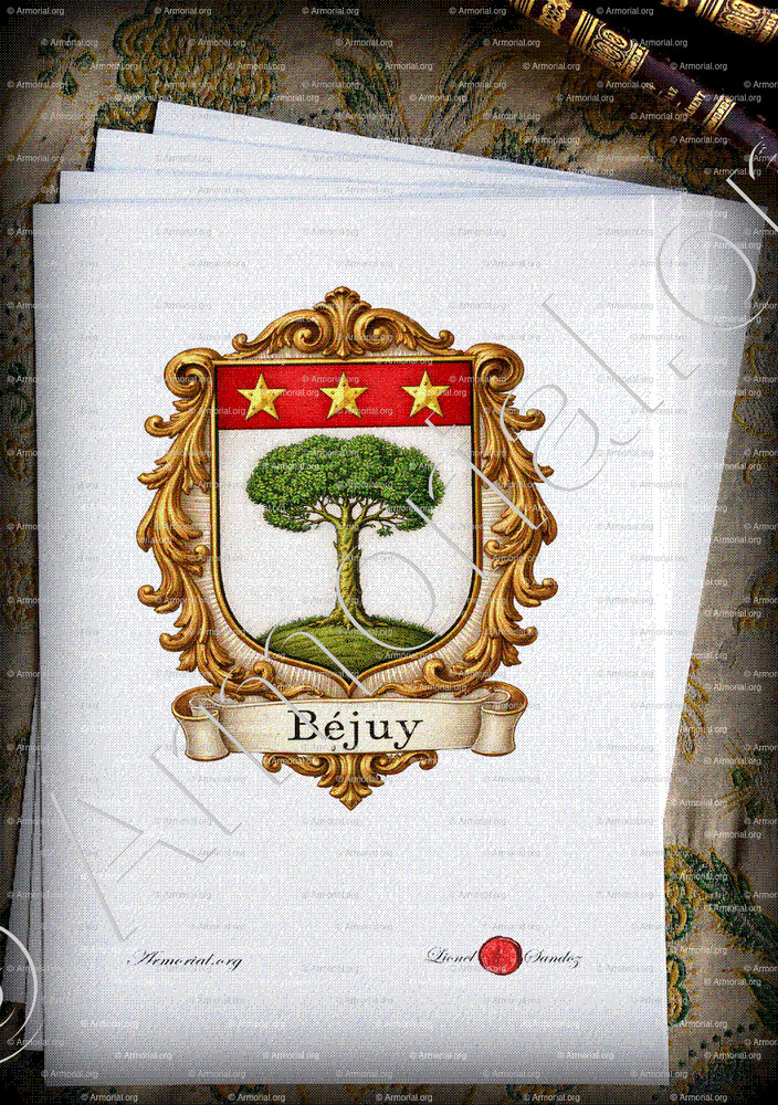 Dans la base armorial.org (édition iconographique de Lionel Sandoz), la famille BÉJUY (Dauphiné) figure sous l’entrée :
