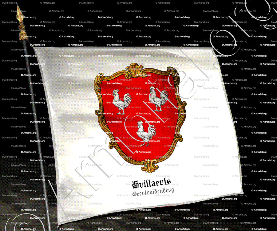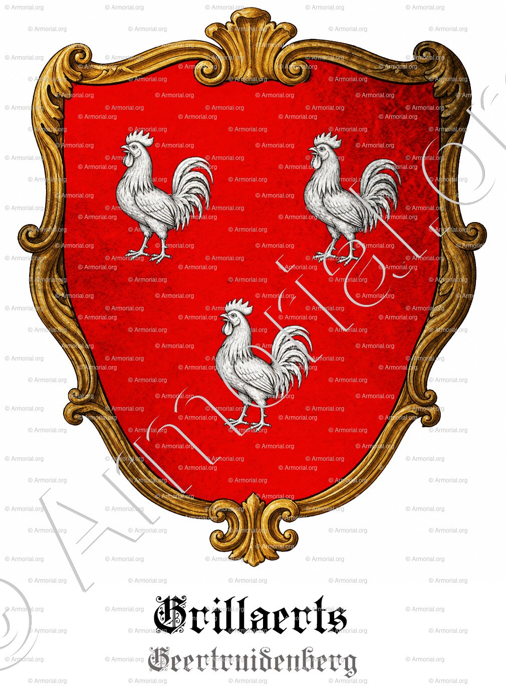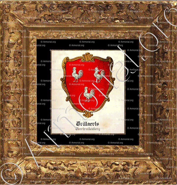 Les armoiries de la famille CRILLAERTS sont décrites comme suit : « De gueules, à trois petits coqs d’argent. »