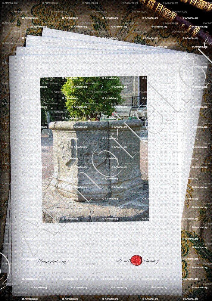 Armoiries de Boubers, seigneurs de Raineval, sculptées sur la fontaine du jardin d'Emonville à Abbeville.