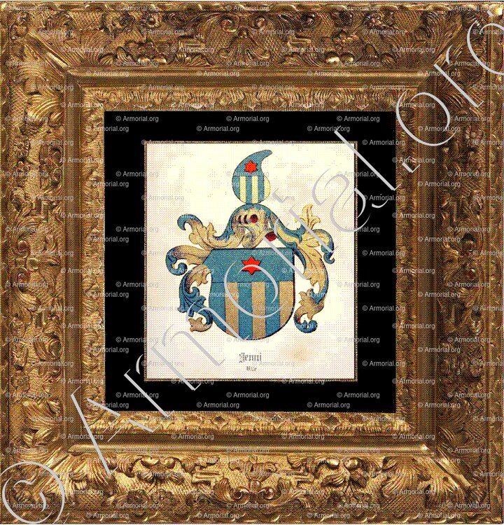 - Cimier: un demi-vol, aux armes de l'écu.