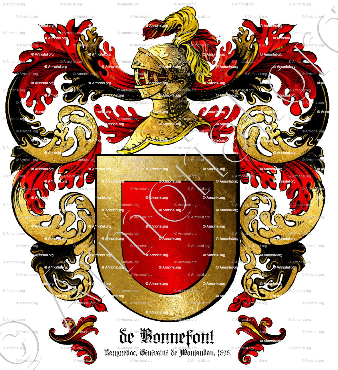 Origine du blason De BONNEFONT : " Languedoc, Généralité de Montauban, 1696., France (ii) "