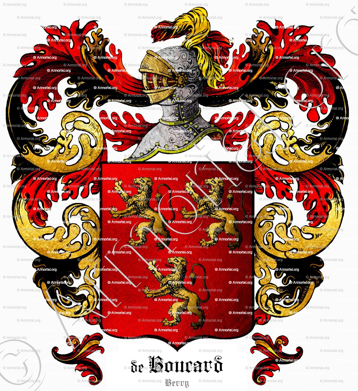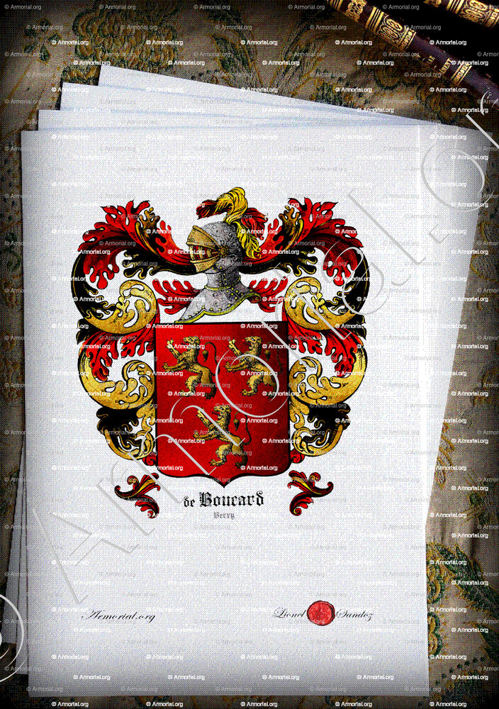 Boucard porte " de gueules à trois Lyons d'or, 2. 1. "