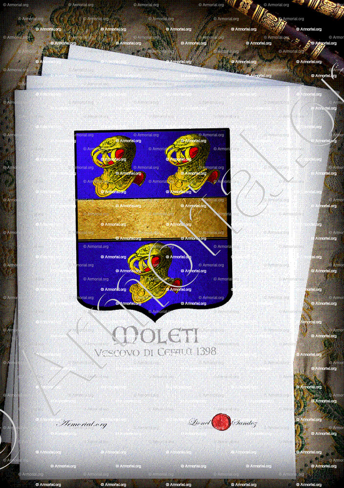 Origine du blason " MOLETI " : " Vescovo di Cefalù, 1398. Sicilia., Italia (i) "