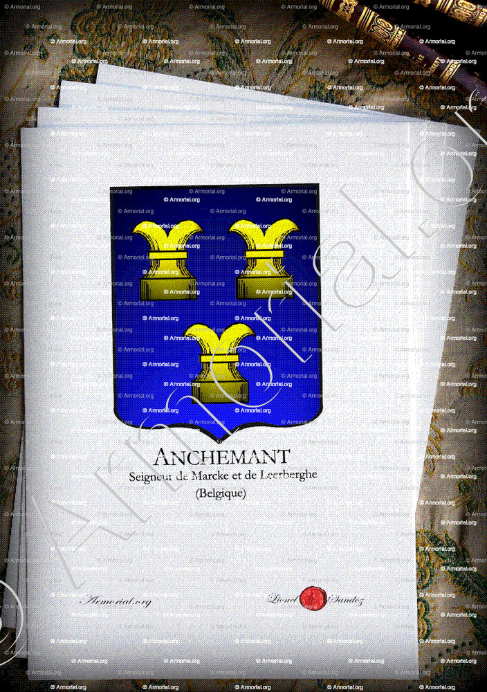 Origine du blason " ANCHEMANT " : " sgr de Marcke & Leerberghe, Belgique "