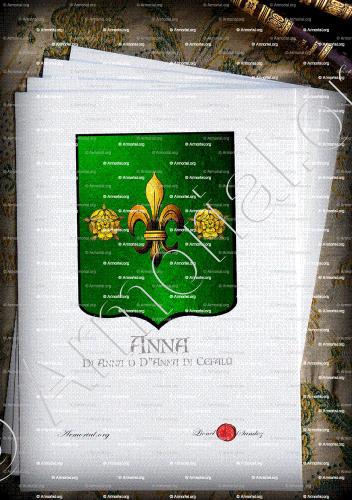 Origine du blason " ANNA " : " Di Anna o D'Anna di Cefalù. Sicilia., Italia (i) "
