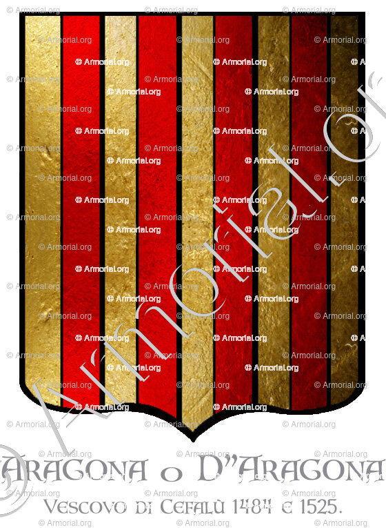 Origine du blason " ARAGONA o D'ARAGONA " : " Vescovo di Cefalù 1484 e 1525.(Sicilia., Italia (i) "