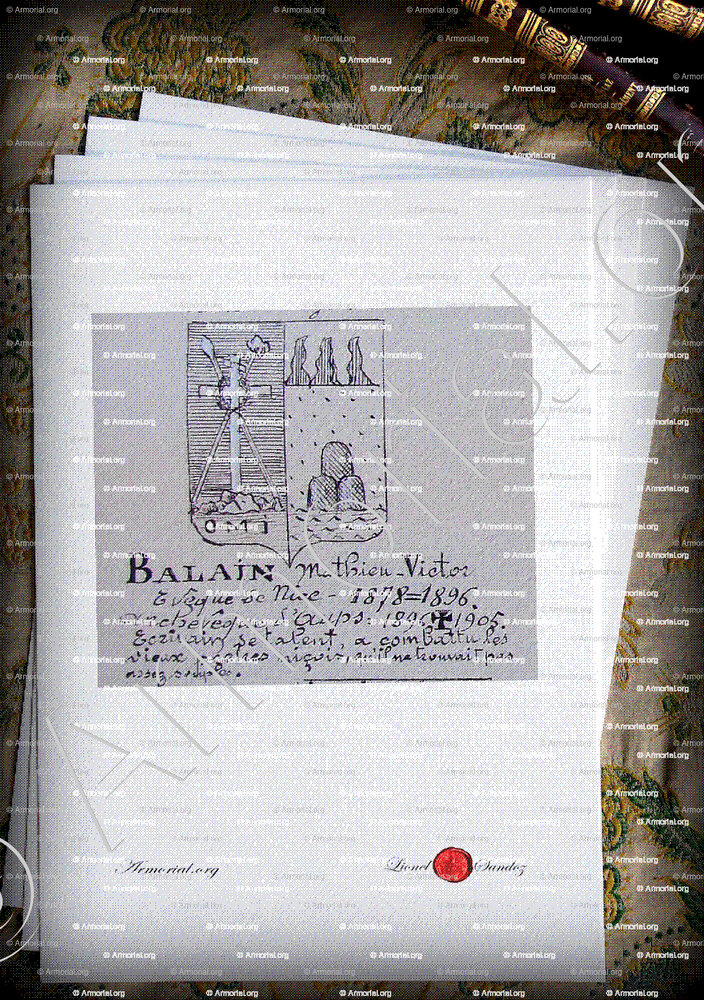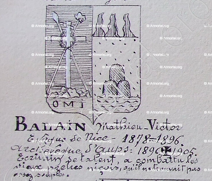 Origine du blason " BALAIN " : " Armorial Nice. (J. Casal, 1902) (Bibl. mun. de Nice), France (i) "