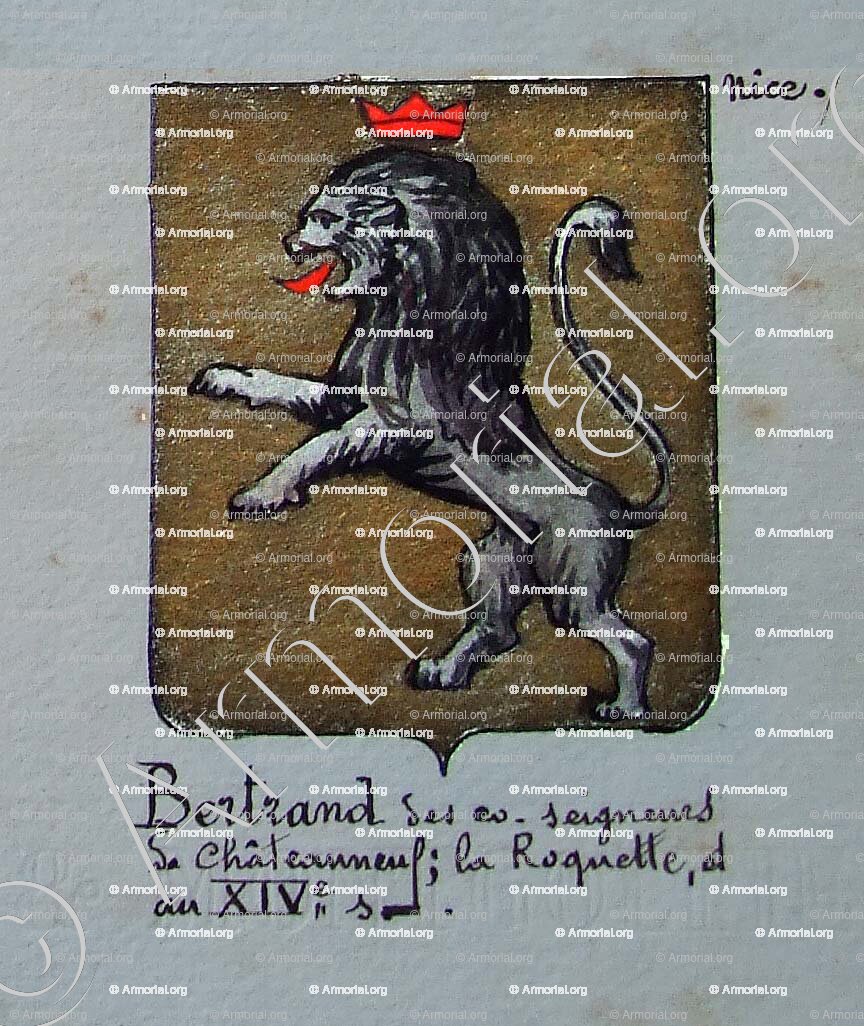 Héraldique BERTRAND de Châteauneuf, la Roquette.