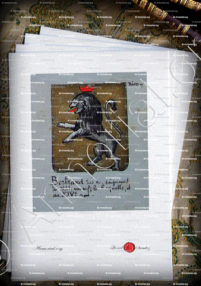 Origine du blason " BERTRAND de Châteauneuf, la Roquette " : " Armorial Nice. (J. Casal, 1902) (Bibl. mun. de Nice), France (i) "