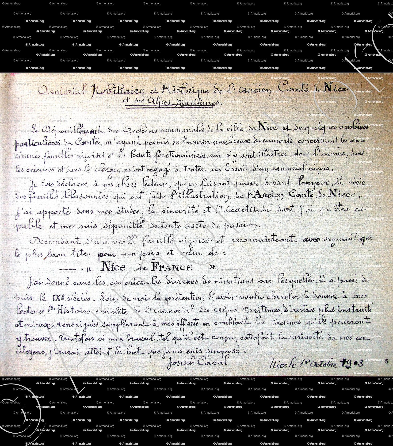 Origine du blason " CASAL " : " Armorial Nice. (J. Casal, 1902) (Bibl. mun. de Nice), France (ii) "