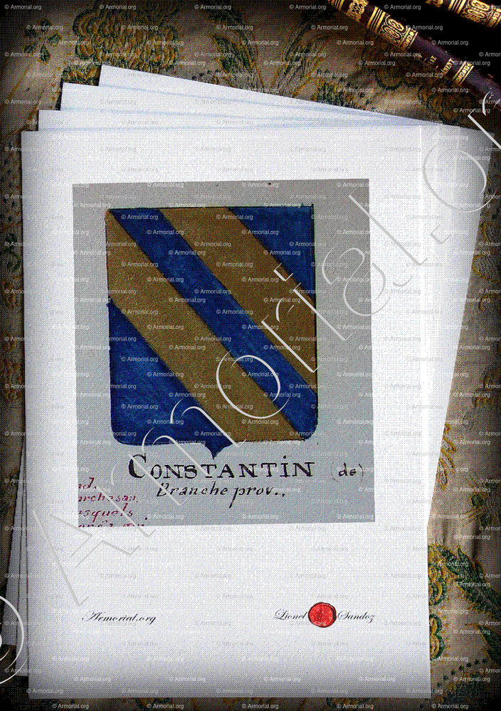 1. Un magnifique fac-similé aquarellé sur papier Vélin d’Arches (format A4) de ce blason