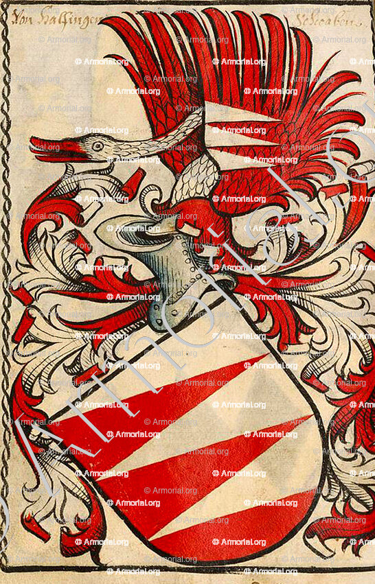 Mais c'est dans les nombreux cimiers qui surmontent les casques des blasons que se révèlent l’art héraldique teutonique, et le cachet particulier que les germains ont donné à leurs armoiries.
