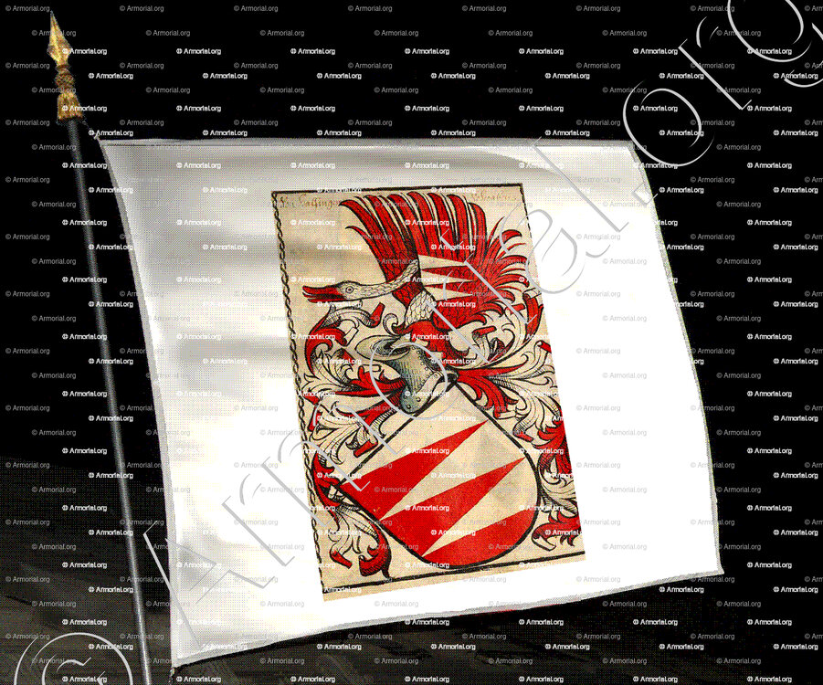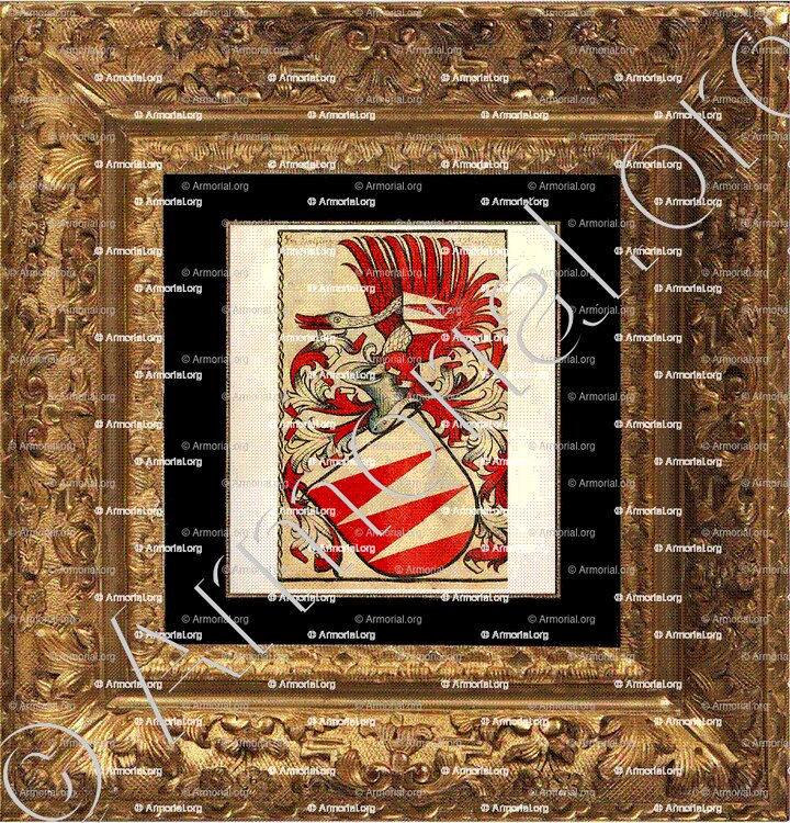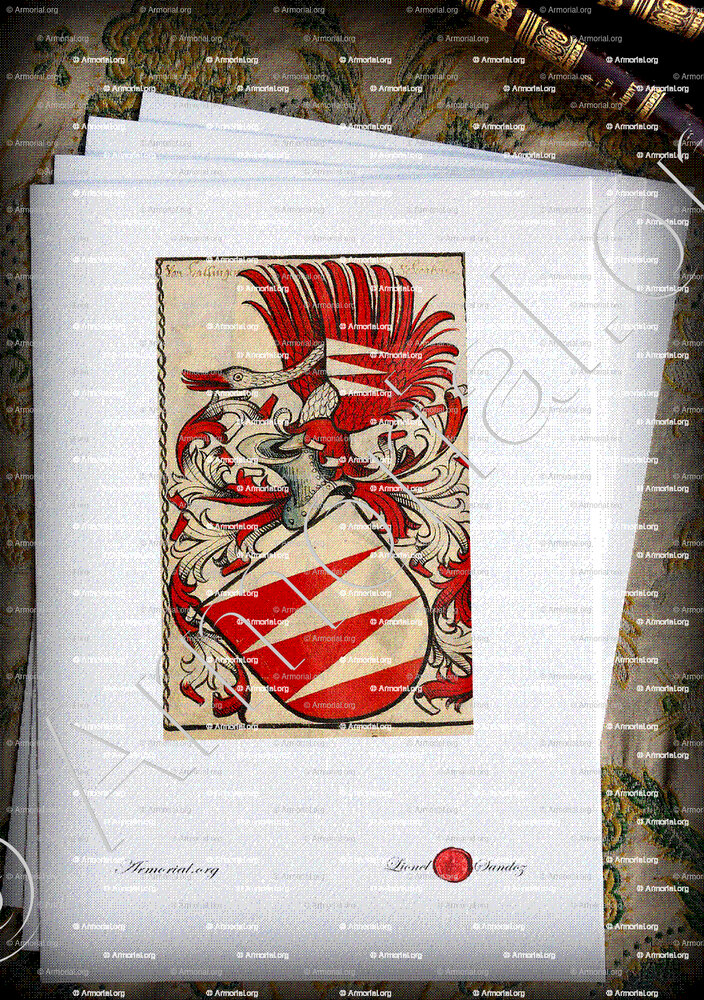 Cimiers et lambrequins qui ornent l’écu prennent les formes les plus nobles et guerrières que l’on trouve dans l’Art héraldique.