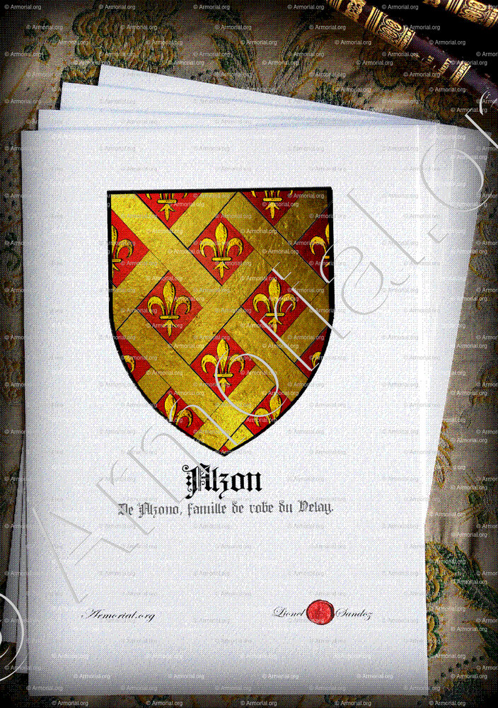 Origine du blason " ALZON " : " De Alzono, famille de robe du Velay, France "