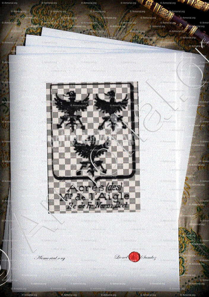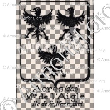« Acres (des) Mis. de l'Aigle est un nom qui s’accompagne d’un blason » ( , )