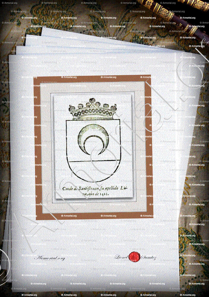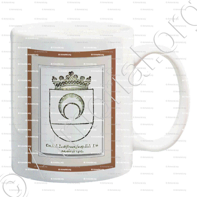 "Coupé: au 1° à un croissant versé; au 2° en attente."