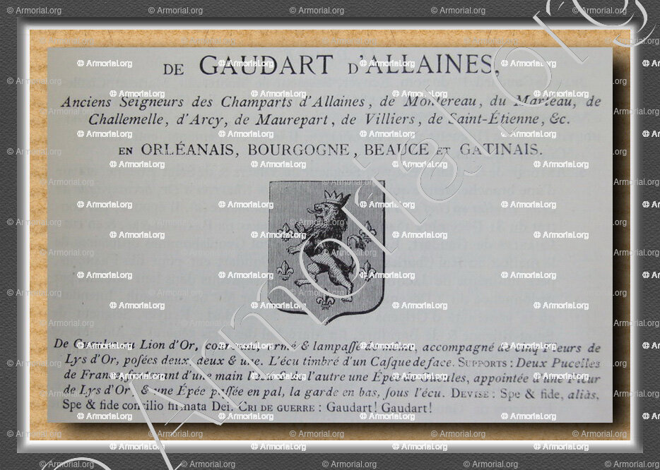 - Devise: SPE ET FIDE alias SPE ET FIDE CONCILLIO FIRMATA DEI. Cri: GAUDART, GAUDART !.