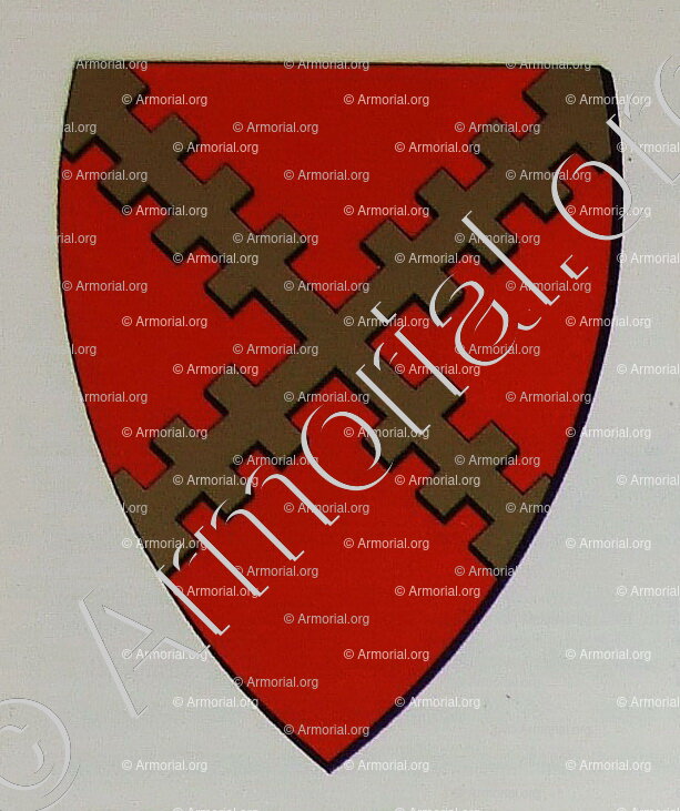 " De gueules à un croix de Saint-André crénelée d'or ."