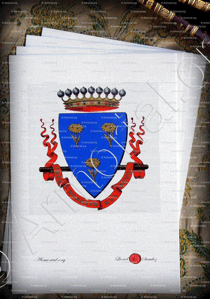 - Devise : FORS L’HONNEUR NUL SOUCI.