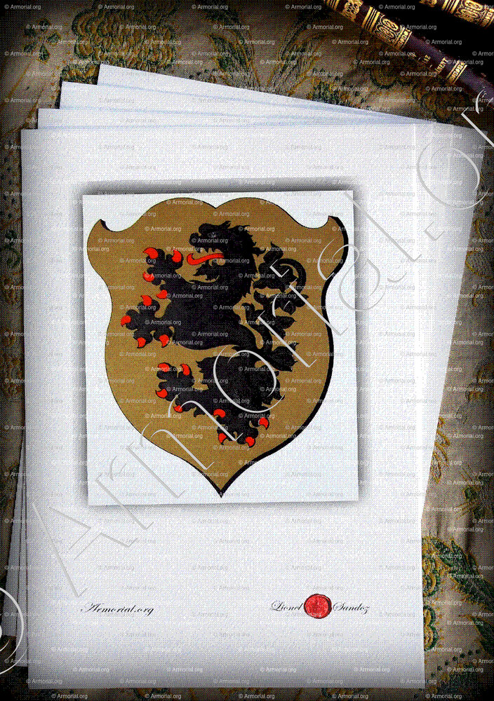 " D'or au lion de sable, armé et lampassé de gueules ".