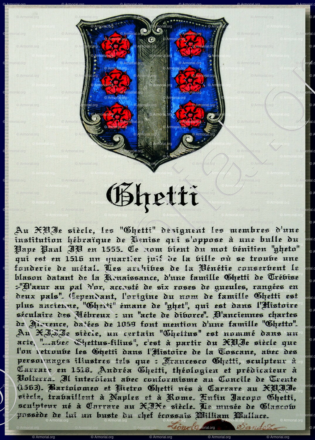 Familie GHETTI - familiewapen GHETTI - Wapen GHETTI - Wapen of blazoen GHETTI - Schild GHETTI - Wapendiploma GHETTI - Zeehond GHETTI - Archief GHETTI - Genealogie GHETTI - Stamboom GHETTI - Heraldiek GHETTI - Herkomst GHETTI - GHETTI in History - GHETTI in de adel.