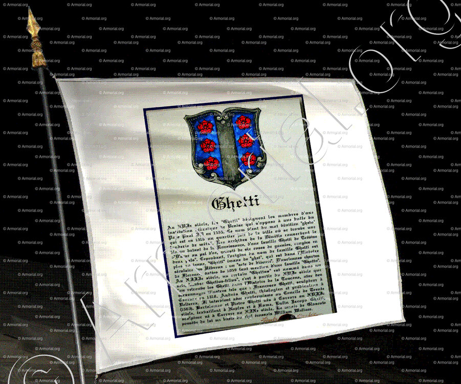 Famille GHETTI - Blason GHETTI - Blasonnement GHETTI - Armoiries GHETTI - Armoiries de famille GHETTI - Armorial GHETTI - Armes GHETTI - Armes sur un écu GHETTI - Ecu GHETTI - Ecus armoriés GHETTI - Bannière, flanchières, caparaçon armoriés GHETTI - Bouclier armorié GHETTI - Sceau GHETTI - Sceau armorié GHETTI - Archives GHETTI - Généalogie GHETTI - Arbre généalogique GHETTI - Ascendance GHETTI - Descendance GHETTI - Héraldique GHETTI - Origine GHETTI. - Les GHETTI dans l'Histoire - Les GHETTI dans la noblesse - Devise GHETTI - Armoiries de bourgeoisie GHETTI - Armoiries de noblesse GHETTI.