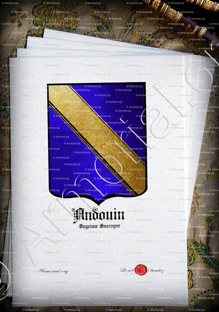 Origine du blason " ANDOUIN " : " Guyenne Gascogne., France (i) "