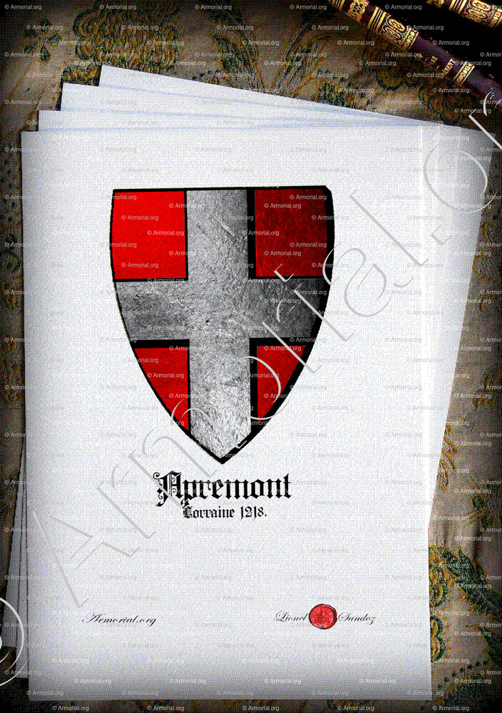 Famiglia APREMONT - Blasone APREMONT - Stemma APREMONT - Stemma di famiglia APREMONT - Lo stemma araldico della famiglia APREMONT - Lo stemma di APREMONT - Araldica e stemma APREMONT - Registro Araldico APREMONT - Stemmario APREMONT - Registro Genealogico APREMONT - Sigillo APREMONT - Archivio APREMONT - Genealogia APREMONT - Albero genealogico APREMONT - Araldica APREMONT - Origine APREMONT - In Storia APREMONT - APREMONT nella nobiltà.